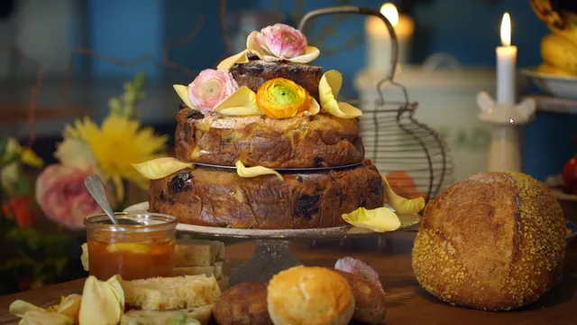 Laat hem op een rooster verder koelen. Bestuif met poedersuiker en serveer in punten met crème fraîche en theejelly.