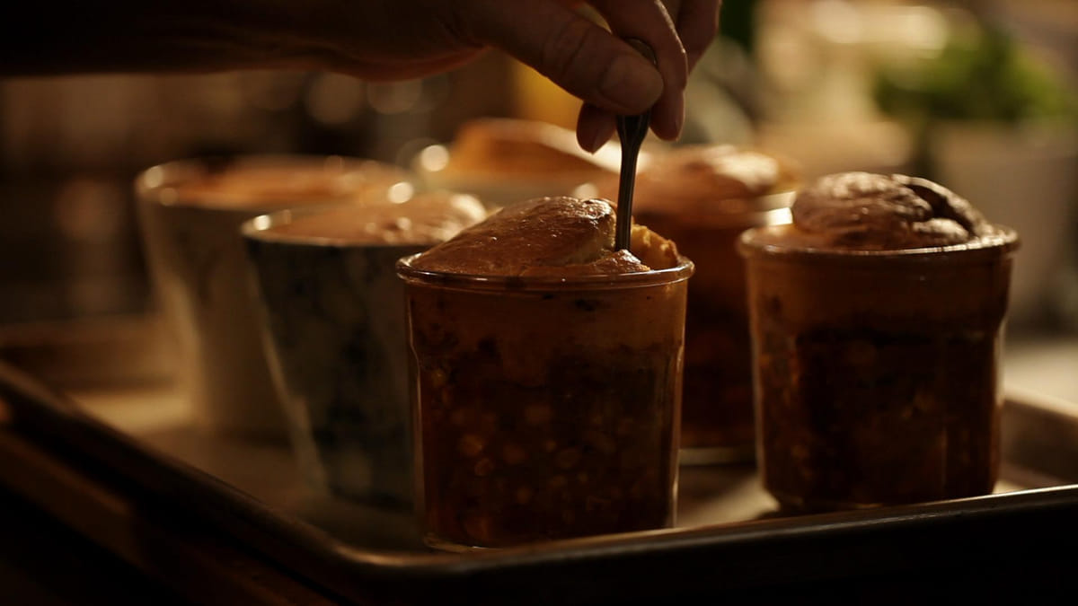 Meng in een grote kom, de polenta, bloem, bakpoeder en het zout goed door. Klop in een aparte kom de eieren, karnemelk en de boter tot een glad mengsel. Giet dit al roerend met een houten lepel bij het maïsmeelmengsel en roer tot een glad beslag. Vul de potten tot ruim de helft met de chili. Giet overal het maïsbroodbeslag op. Bak de potten in zo’n 25 minuten of tot het brood mooi gaar is en de saus lekker pruttelt.