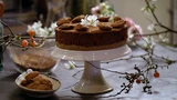 Haal voor het serveren de taart uit de vorm, verwijder de plasticfolie en bestrooi met cacao en versier eventueel met zelfgemaakte truffels (zie recept). Serveer in heel kleine puntjes, geef er dunne custard of ongeklopte ongezoete room bij.