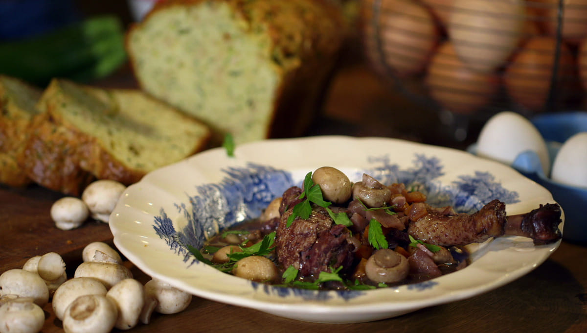 Hier vind je het complete recept van het hoofdgerecht coq au vin.