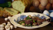Voeg de champignons aan de stoof toe en draai het vuur hoger om de saus te laten inkoken.