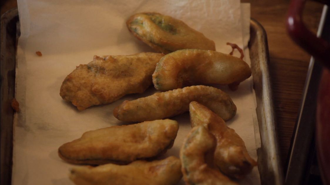 Meng de bloem met het zout en peper en roer het bier erdoor tot een glad beslag. Haal de avocado’s erdoor en frituur ze direct tot ze goudbruin en knapperig zijn. Laat ze even uitlekken op keukenpapaier en dien ze dan vrijwel direct op in de tortilla.