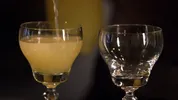 Laat het nu zeker 12 uur op kamertemperatuur staan. Net zo lang tot de fles keihard voelt. Dan is het goed gaan gisten. Laat het anders nog even staan, maar doe dit maximaal 48 uur. Zet de fles dan gelijk in de koelkast om koud te worden. Wees voorzichtig met het losdraaien van de dop! U kunt voor het uitschenken de drank door een theezeefje schenken: de pulp zit vooral in de eerste twee glazen, maar vies is het niet, u kunt het ook gewoon opdrinken.