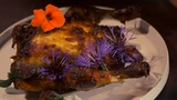 Haal de schaal met kip uit de koelkast, laat het iets op kamertemperatuur komen. Verwarm de oven op 180 graden. Braad de kip in 1 uur gaar. Maak er een salade bij.