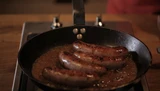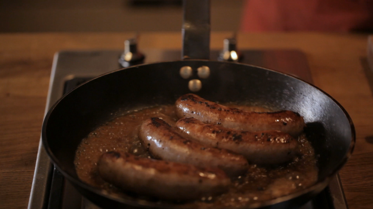 Pocheer de worst 5 minuten in heet water voor u hem bakt. Zo zal hij minder gauw barsten.
