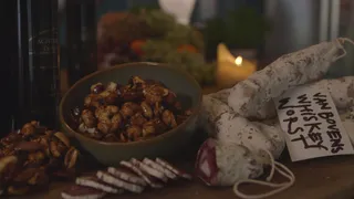 Week de blaadjes gelatine in koud water. Breng het water met de stroop, de suiker, de kruiden en het zout aan de kook en laat zeker 7 minuten zacht koken tot een goudgele dikke siroop van 116 graden.