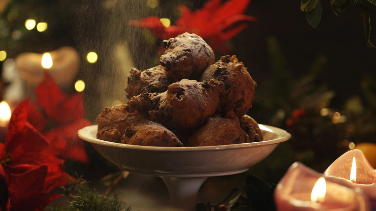 Maak met een ijsbolletjestang of 2 ingevette lepels bollen beslag en laat ze in de hete olie glijden. Keer ze na een paar minuten.