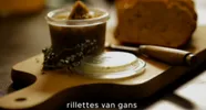 Snijd 1 kilo ganzenvlees (mag met bot) en 1 kilo buikvet van varken in stukken. Braad al het vlees met een paar takken tijm, wat laurier, royaal peper en zout in een flinke klont reuzel of ganzenvet aan in een zware pan met deksel. Doe het deksel op de pan, zet de pan op een sudderpitje en laat het 3 uur onder af en toe roeren stoven.
