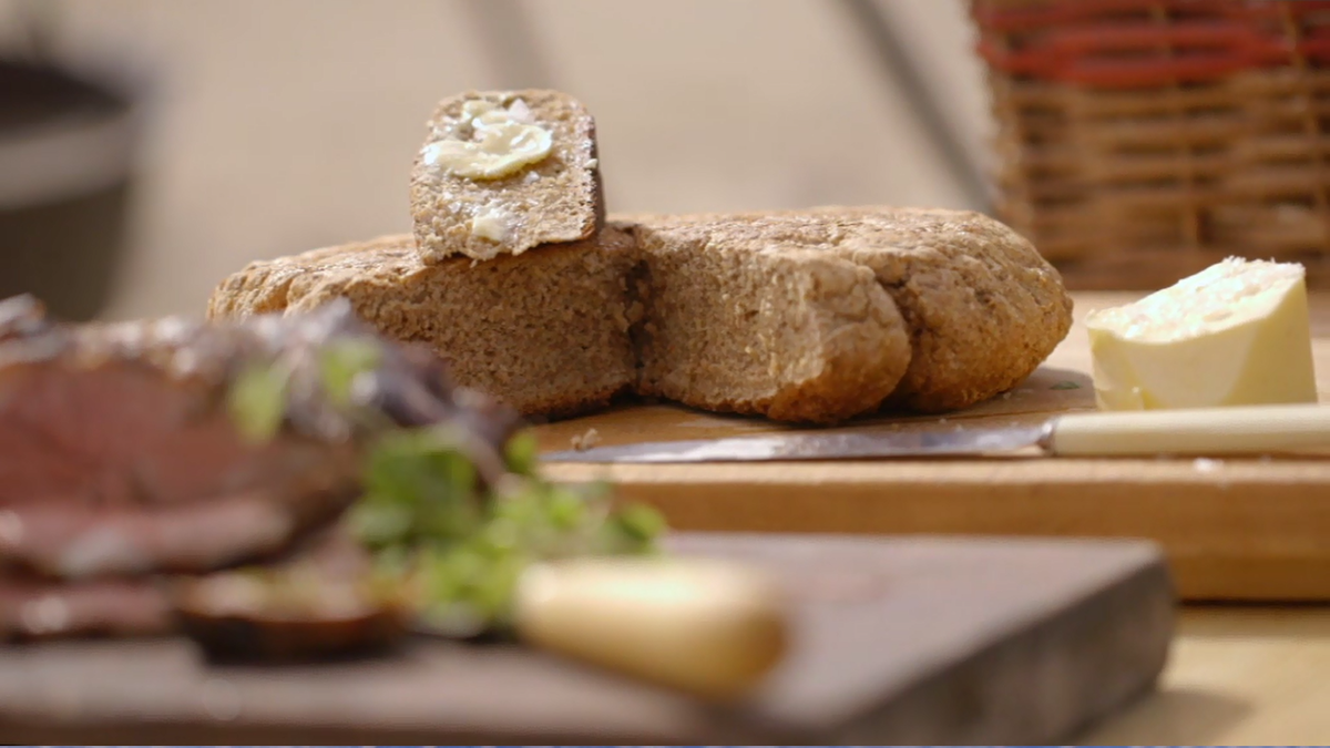 IN DE PAN: Bak het brood in de pan tot de onderkant gaar is. Open de pan niet te vaak, de hitte gaat er dan uit. Draai het vuur lager als het te hard gaat. Keer het brood en bak de andere kant.