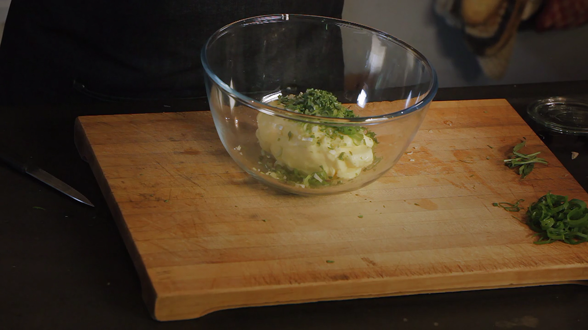 Meng met de dragon, knoflook, lente-ui en evt. nog wat grof (zilt) zeezout.