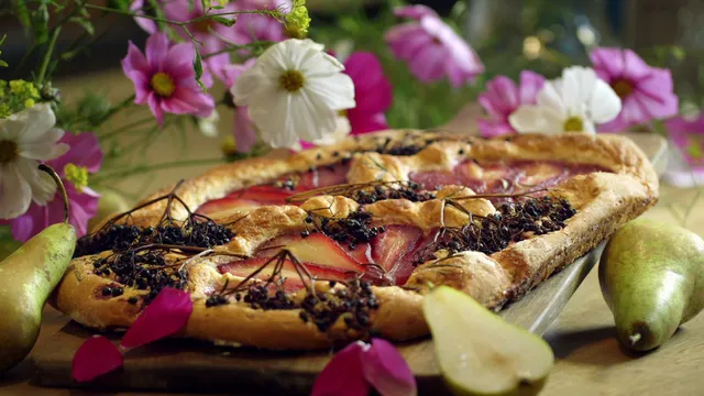 Hier vind je het complete recept van zoete foccacia met vlierperen.