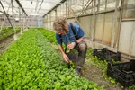 Er zijn een paar groenten en kruiden die ik heel erg mooi vind om zelf mee te werken. Ik vind rabarber heel erg leuk. En die spitskool die nu in de kas staat vind ik een heel mooie teelt. En kruiden, omdat die allemaal geneeskrachten hebben. Tegen elke kwaal is wel een kruid. In Nederland is tegenwoordig voor elke kwaal Kruidvat!”