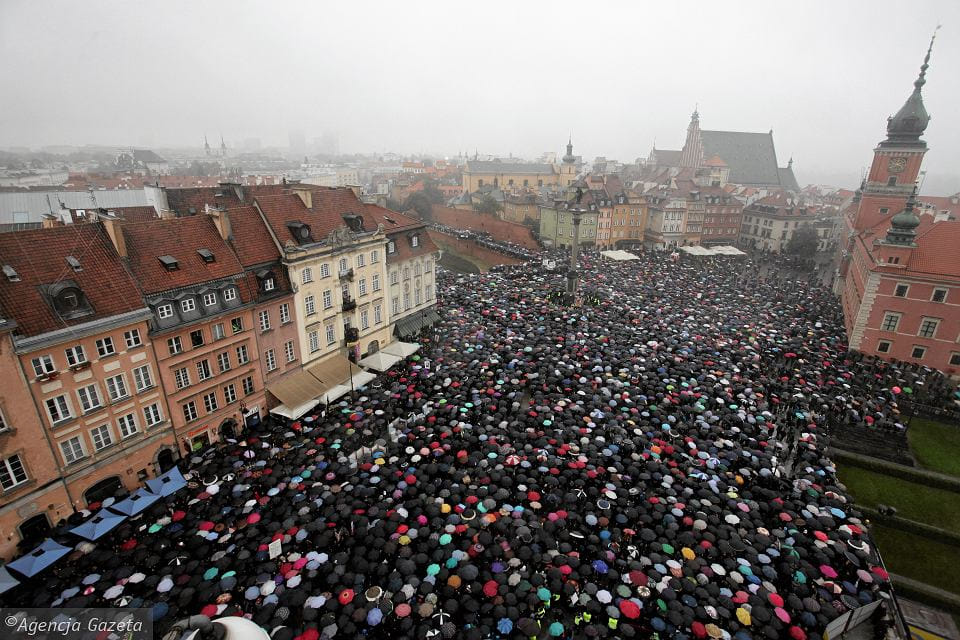 In reactie daarop bezetten duizenden vrouwen in het zwart gekleed en met zwarte paraplu's het centrum van Warschau. ‘’Vrijheid, gelijkheid, abortus’’, werd er over de straten gezongen. Die dag ging de boeken in als het Zwarte Vrijdag-protest. Het heeft PiS, die met een meerderheid in het parlement de wet in eerste lezing had aangenomen, uiteindelijk zodanig onder druk gezet dat maar 58 vertegenwoordigers voor hebben gestemd. Tegenover 352 tegen.