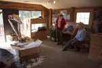 Mitchell pompt modderwater uit de boot en schiet dit met een soort Super Soaker recht de lucht in, waarmee hij een enorme modderfontein veroorzaakt.