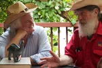 De avond valt, we zetten onze tenten op langs de oever van de rivier waar we overnachten. Veel ontdekkingsreizigers uit vervlogen tijden vonden het wiel niet per se zelf uit maar deden hun voordeel met de kennis en gastvrijheid van de lokale bevolking en zo hoeven wij ons er niet voor te schamen dat ons verblijf hier mogelijk wordt gemaakt door een outdoor outfitter, bestaande uit vader Terry en zoon Michael. Michael is een jonge dertiger die in tegenstelling tot de meesten van zijn generatiegenoten niet naar de stad is getrokken maar in de rimboe is gebleven. Dat al zijn vroegere vrienden nu ver weg wonen deert hem niet: ‘I’m kind of a loner anyway.’ Hij is een prototype ‘hamburger-Amerikaan’ en hij draagt zulke baggy broeken dat als hij bukt, hij zijn hele kont ontbloot. Zijn vader vervoert toeristen met inferieur materiaal (een catamaran die er steeds mee ophoudt) en weet niet wat sms’en is – wat heb je aan zulke kennis als er toch geen bereik in de omgeving is? Het duo heeft smurfblauwe plastic picknicktafels en –banken bij zich en bereidt hamburgers en omeletten waar de gemiddelde fastfoodzaak een puntje aan kan zuigen.