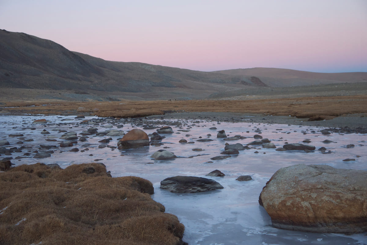 We zijn in het Altai-gebergte; west-Mongolië, ongeveer 1600 kilometer van Ulaanbaatar vandaan, vlakbij de grens met Kazachstan. De bevolking is hier meer gericht op het buurland dan op de rest van Mongolië. Men spreekt Kazach en is islamitisch. In Russische busjes met malafide vering scheuren we door een wildernis met besneeuwde rotspartijen. Hobbelend, rammelend, met onze kop tegen het dak en onze ingewanden die flipperkast spelen. In de valleien staan yurts op een kluitje. Naast iedere tent een zonnepaneel en een satellietschotel. Wij slapen vanavond bij een herdersfamilie die in een stenen huisje woont. De 73-jarige grootvader Kapiya leeft er samen met zijn zoon, diens echtgenote en zijn kleinkind. Het kind staat met zijn broek op zijn enkels in de deuropening te plassen. Welkom. Er is douche noch toilet. Iedereen moet zijn behoefte buiten in de vrieskou doen. Voordeel: de drollen bevriezen waar je bij staat. Zich wassen doet men ‘s ochtends buiten met een keteltje water; alleen het gezicht en de handen. De rest van het lijf boent met eens per week in een teil gekookt water in de huiskamer. Om het huis loopt vee: jaks, geiten en een paard. Behalve drollen liggen er botten van beesten, lege tubes tandpasta, scherven servies, glas en stukken plastic verspreid langs het huis – een beetje zoals Ulaanbaatar er in de tijd van Przwalski uit moet hebben gezien, op de bedelaars na.