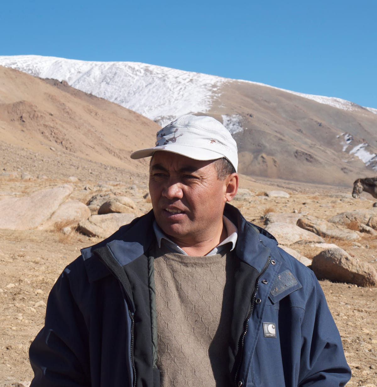 Canat is 45, geboren en getogen in Ulaanbataar. Onderzoek naar de Mongoolse geschiedenis en cultuur voor de Academy of Science deed hem door het land reizen. Door deze reizen kwam hij op het idee om gids te worden. In 1992 begon hij schrijvers, fotografen en filmmakers door het land te leiden. Het traditionelere Ulgii was een betere plek om een toeristisch bedrijf te runnen dan Ulaanbaatar, dus vestigde hij zich twee jaar later hier. ‘In het zuiden van Mongolië leven weliswaar ook nomaden maar die vervoeren zichzelf per auto, hier in het westen per kameel,’ licht Canat toe. De nomaden verhuizen zo’n vier keer per jaar. Als het vee de omgeving heeft afgegraasd, trekt men verder. In de zomer leven de nomaden hoog in de bergen omdat daar minder muskieten zijn, ’s winters duiken ze het dal in omdat het daar warmer is. Sinds 2005 zijn de winters uitzonderlijk streng en hebben veel nomaden vee verloren.
