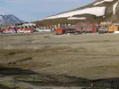 Ik ben de crew van O’Hanlon vooruit gereisd om geschikte mensen te vinden die over de expeditie van Andrée kunnen vertellen. Als ik bij aankomst in Longyearbyen uit de bus stapt, voel ik me de Duitse toerist die in de film Bagdad Café midden in de woestijn wordt afgezet, met alleen haar koffer als houvast. De buschauffeur maakt een handgebaar, ergens in de verte moet het zijn. Ik loop een soort industrieterrein op, maar blijf twijfelen of ik wel goed zit. Het hotel, Mary Ann’s Polarrigg, zou in het centrum moeten liggen, maar dit lijkt meer op het randje van de afgrond. Toch blijkt het te kloppen en het hotel is een ervaring op zich. Overal opgezette ijsberen, in de smalle gang moet ik me zelfs een beetje tegen de muur drukken om langs het bovenste deel van de ijsbeer dat uit de muur steekt – zijn onderkant staat in het restaurant – te kunnen. Als ik mijn kamerdeur opendoe denk ik buiten een kat te zien weglopen, maar het blijkt een poolvos te zijn. Katten zijn hier verboden vanwege het risico op het verspreiden van ziekten. De weg naar het centrum, vijf minuten lopen, vind ik door de grote verroeste buizen te volgen en dan de rivier over te steken. Ik kom langs houten stellages, die nog overal op het eiland staan. Daarmee werden vroeger de bakken met steenkool getransporteerd.