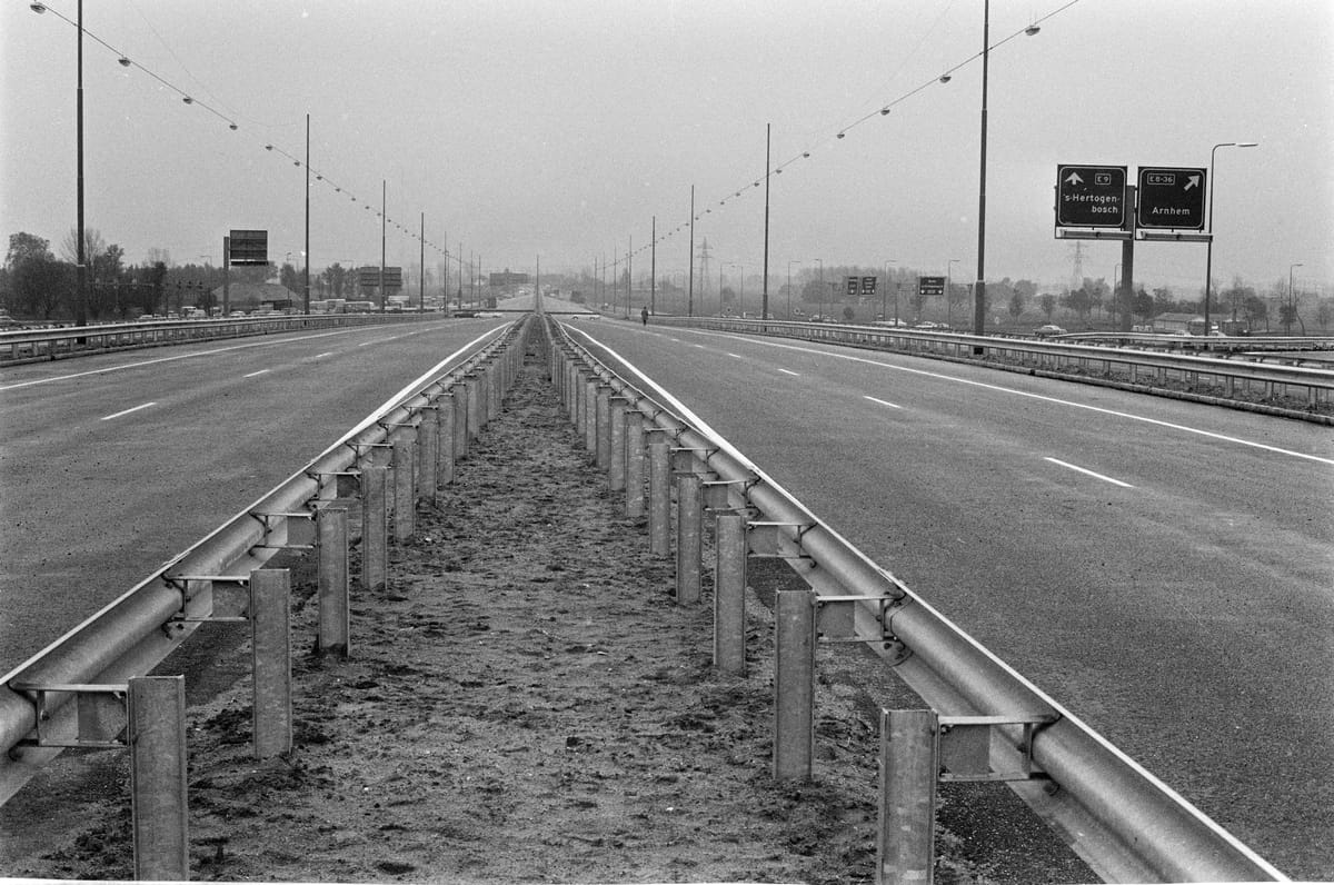 Rijkswaterstaat spreekt van geleiderails, maar de rest van Nederland noemt de ongeveer twee ton per kilometer kostende zinken snelwegafscheiding vangrails. De eerste werden in 1965 geplaatst: tegen ‘middenbermperforaties’, snelwegbotsingen met tegenliggers. Inmiddels ligt (staat?) er bijna 8000 km van.