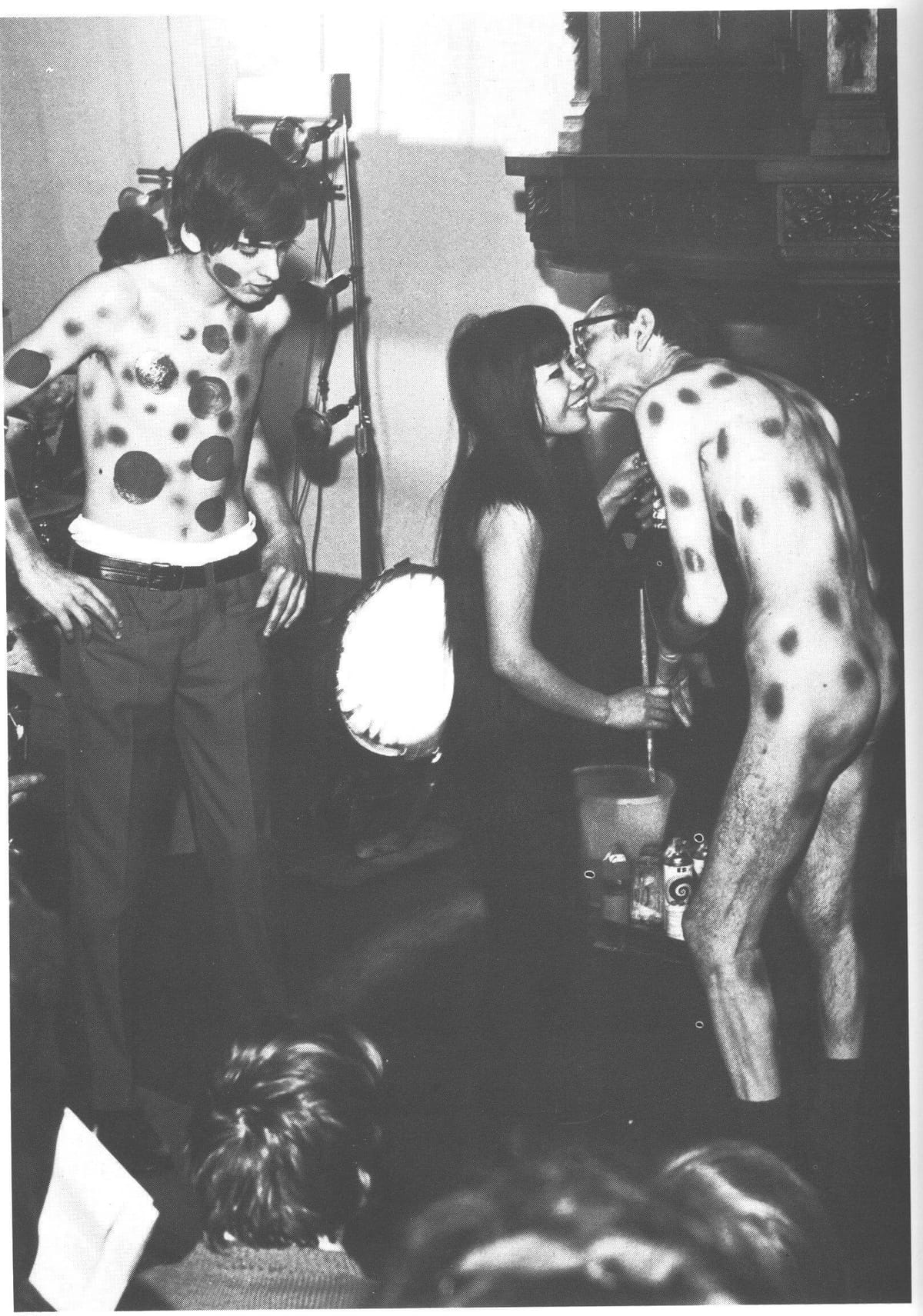 Werden de ontblote lijven – bij het vorderen van de steeds woeligere jaren zestig – bij iedere happening, aksie of kommunikaasie naar hartelust beschilderd (action-painting), in de internationale kunstscene was de Japanse kunstenares Yayoi Kusama een van de eersten. Vanaf 1962 exposeerde zij diverse malen in Nederland, uitgenodigd door kunstenaar Henk Peeters, lid van de Nul-groep. Na opening van haar met stippel- en falluspatronen beklede installatie Polka Dot Love Room trokken de door Kusama georganiseerde Bodyfestivals veel publiciteit. Zo werd de foto van Kusama die het naakte lichaam van de voormalige Nul-kunstenaar Jan Schoonhoven met stippen beschildert een van de legendarische beelden uit die tijd.