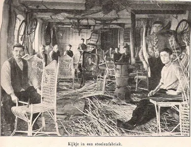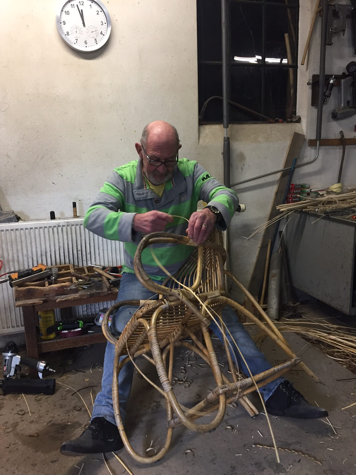 Het spul kwam niet uit Indonesië, zoals vaak werd gedacht, maar uit het Friese Noordwolde, even ten zuidoosten van Heerenveen. Rond 1825 moet zich daar een Duitse veenarbeider hebben opgehouden die mandjes kon vlechten van in het wild groeiende wilgentenen. Hij bracht de dorpsbewoners de kunst bij, en al snel werd geld verdiend met deze huisindustrie. Toen later die eeuw dominee Hendrik Edema van der Tuuk in Amsterdam een winkel zag waar in Duitsland vervaardigde rieten stoelen werden verkocht, dacht hij: dat kunnen wij in mijn standplaats Noordwolde ook, genoeg riet en goedkope werkkracht voorhanden. Kleine bedrijfjes verrezen, en eind negentiende eeuw werden daar 200.000 stoelen per jaar gefabriceerd. In 1908 werd er de Rijksrietvlechtschool opgericht, om aankomende thuiswerkers – rietvlechters, stoelenmatters en mandenmakers – meer perspectief te kunnen bieden. Er kon een driejarige opleiding worden gevolgd. In de school, die in 1969 wegens gebrek aan leerlingen moest sluiten, is sinds 2001 het Nationaal Vlechtmuseum gehuisvest. Zijn collectie toont de sociale en culturele geschiedenis van vlechtdorp Noordwolde, maar geeft ook een beeld van de vlechtkunst en vlechtgeschiedenis wereldwijd. Voor OVT's 'Het spoor terug' stelde Gerard Leenders een aflevering samen over de sociale geschiedenis van het rotanstoeltje.