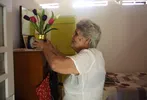 In het Sint Nikolaas Huis laat een van de vrouwen haar plastic tulpen zien. Ze raakt de bloemen aan alsof het een kostbare schat betreft. ‘In Nederland zijn echte tulpen heel duur toch? Ik zou ze graag eens willen zien.’ De vrouw laat ook een foto zien waarop ze in Nederlandse klederdracht poseert. Alleen de klompen ontbreken, die kon ze niet zelf maken. Ze sluit zich aan bij de andere dames in de gemeenschappelijke ruimte en pakt een kleurboek. Met tulpen.
