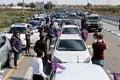 Gehuld in T-shirts met de tekst “Laat Gaza niet uithongeren” reed een groep Israëlische activisten met vrachtwagens vol hulpgoederen afgelopen week richting Gaza.