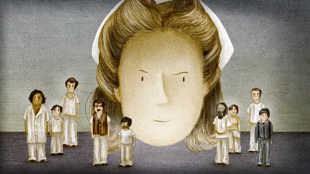 En dat is ook het thema dat het verhaal dat de film uit 1975 draagt. Een patiënt -Jack Nicholson- die zich als geesteszieke voordoet om gevangenisstraf te ontlopen, komt in een kliniek terecht, waar de hoofdverpleegster iedereen tiranniseert. Ze deelt straffen uit voor kleine vergrijpen en laat zwaardere gevallen bestraffen met elektroschocktherapie en lobotomie -een hersenoperatie om psychische stoornissen te verhelpen. Want er mag geen twijfel bestaan over wie er in de kliniek de baas is, dat is zuster Ratched. Uiteindelijk ontvouwt zich een drama met alleen maar verliezers: de opstandige patiënt verandert na behandelingen in een kasplant en de zuster verliest na een half geslaagde wurging haar stem. Alleen de Indiaan uit de inrichting weet uit de kliniek te ontsnappen. Eind goed, al goed voor Native America, maar verder voor niemand dus.