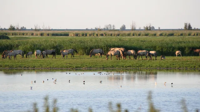 De Oostvaardersplassen kennen we dankzij de bioscoop hit uit 2013 de Nieuwe Wildernis. Goed gefilmde ‘oer-natuur’ : Een landschap zoals duizenden jaren geleden is vanuit de trein elke dag tussen Lelystad en Almere te bewonderen. Grote kuddes grazende edelherten, wilde paarden en runderen die het bestaan van 31 uitzonderlijke soorten vogels mogelijk maken met nauwelijks interventie van mensen. Nu een internationaal erkend reservaat voor met uitsterven bedreigde vogels in Europa, zoals de Zeearend.