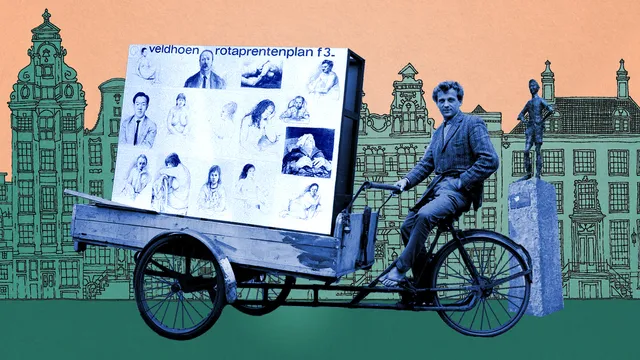 1964, Amsterdam. Kunstenaar Aat Veldhoen roept een ‘prentenrevolutie’ uit. Hij verkoopt zijn prenten in massale oplagen, voor slechts drie gulden per stuk. ‘Iets wat mooi is, hoeft helemaal geen geld te kosten,’ aldus Veldhoen. Nieuwe druktechnologieën hebben elke belemmering om goedkoop kunst te produceren immers weggenomen. Veldhoen: ‘Het is een heel nieuw probleem, dat die gekke machines voor ons hebben bedacht: het is het probleem van wat heeft er nou waarde.’