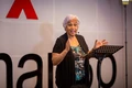 Rosita Steenbeek, ambassadeur van het Stuk van Jaar, komt vertellen over de winnaar.