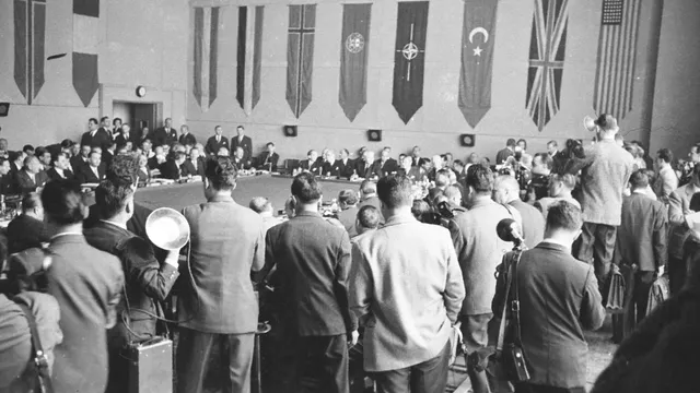 Deze week bestaat de NAVO 75 jaar. En dat jubileum wordt gevierd in roerige tijden met aan de ene kant de Russische dreiging en aan de andere kant Donald Trump, die openlijk speculeert over het niet nakomen van de verplichtingen die bij het NAVO-lidmaatschap horen. Maar dit is niet de eerste crisis die de NAVO heeft doorgemaakt. ‘De NAVO is momenteel dood’, zei de Duitse minister van Buitenlandse Zaken bijvoorbeeld in 1956.