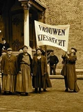 Het honderdjarig jubileum van het actief kiesrecht voor vrouwen wordt in 2019 groots herdacht en gevierd. Hiervoor zijn de organiserende herdenkingsorganisaties op zoek naar parafernalia uit de vrouwenkiesrechtstrijd. Vooral vaandels die destijds massaal opgetuigd, genaaid en geborduurd werden door vrouwenclubs hebben de belangstelling. Historica Mineke Bosch is namens het Groninger Museum bij ons te gast om een oproep te doen.