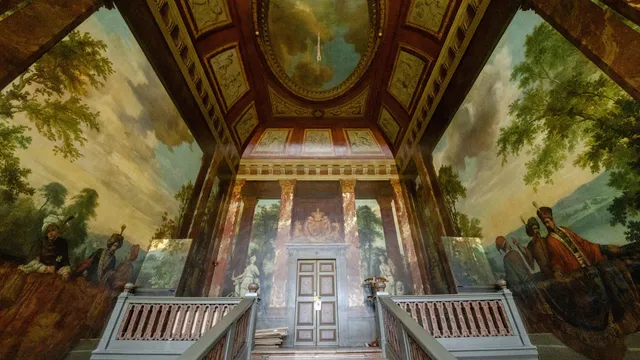 Op deze muren ontvouwt zich het één na grootste schilderij van Nederland. Het is een bijzonder kleurrijk schouwspel: met papegaaien, Oriëntaalse vergezichten én maar liefst zeven weelderig uitgedoste edellieden uit het Ottomaanse Rijk.