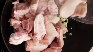- Zet het vuur uit en voeg de makreel en spekbokking in grove stukken toe aan de soep. Laat de vis met het deksel op de pan 5 minuten opwarmen.
