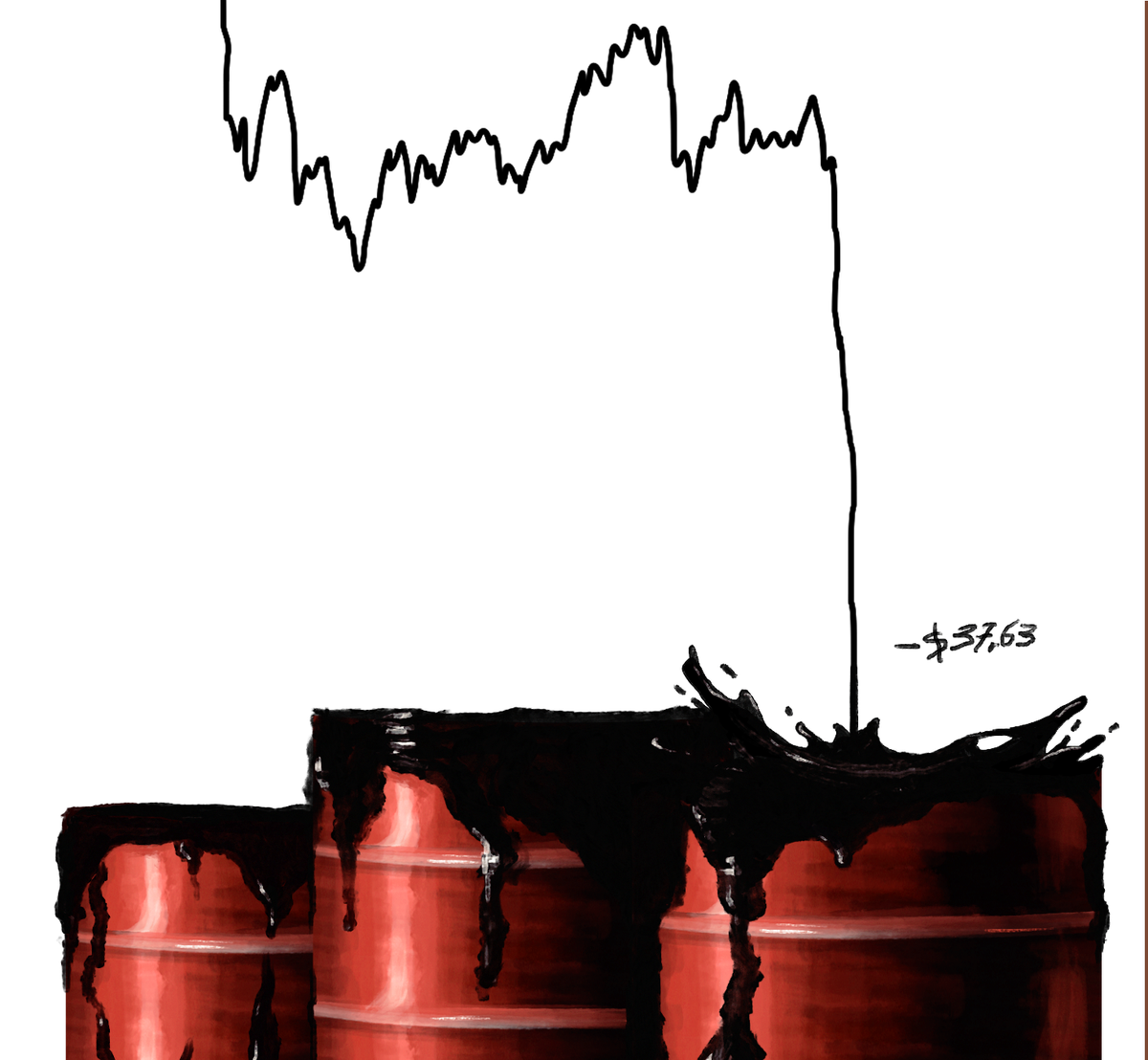 Toen er geen druppel meer bij kon, daalde de prijs van olie in Cushing tot nul, en zelfs daaronder. Want een koper zou zijn olie nergens kwijt kunnen.