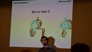 Het in Eindhoven gevestigde MediaLab van de VPRO organiseert regelmatig meerdaagse hackathons. In zo'n hackathon buigt een gemèleerd gezelschap van denkers, doeners en makers zich samen over de mogelijkheden die nieuwe technologieen ons als publieke omroep te bieden hebben. In slechts een paar dagen worden dan prototypes gemaakt van nieuwe concepten. In september 2016 ging het over... Bots.