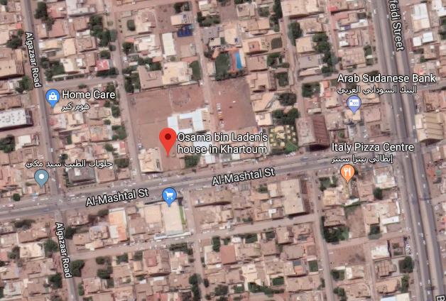 Zijn huis staat er nog – op Google Maps tenminste. Samen met zijn vrouwen en kinderen woonde Osama bin Laden van 1991 tot 1996 in de wijk al-Riyadh, een van de rijkste buurten van de Soedanese hoofdstad Khartoem. De woning was naar verluidt sober ingericht en van uiterlijk vertoon was er vrijwel geen sprake; buiten de zwaar bewapende bewakers dan en, na een mislukte aanslag op zijn leven, de aanwezigheid van loopgraven.