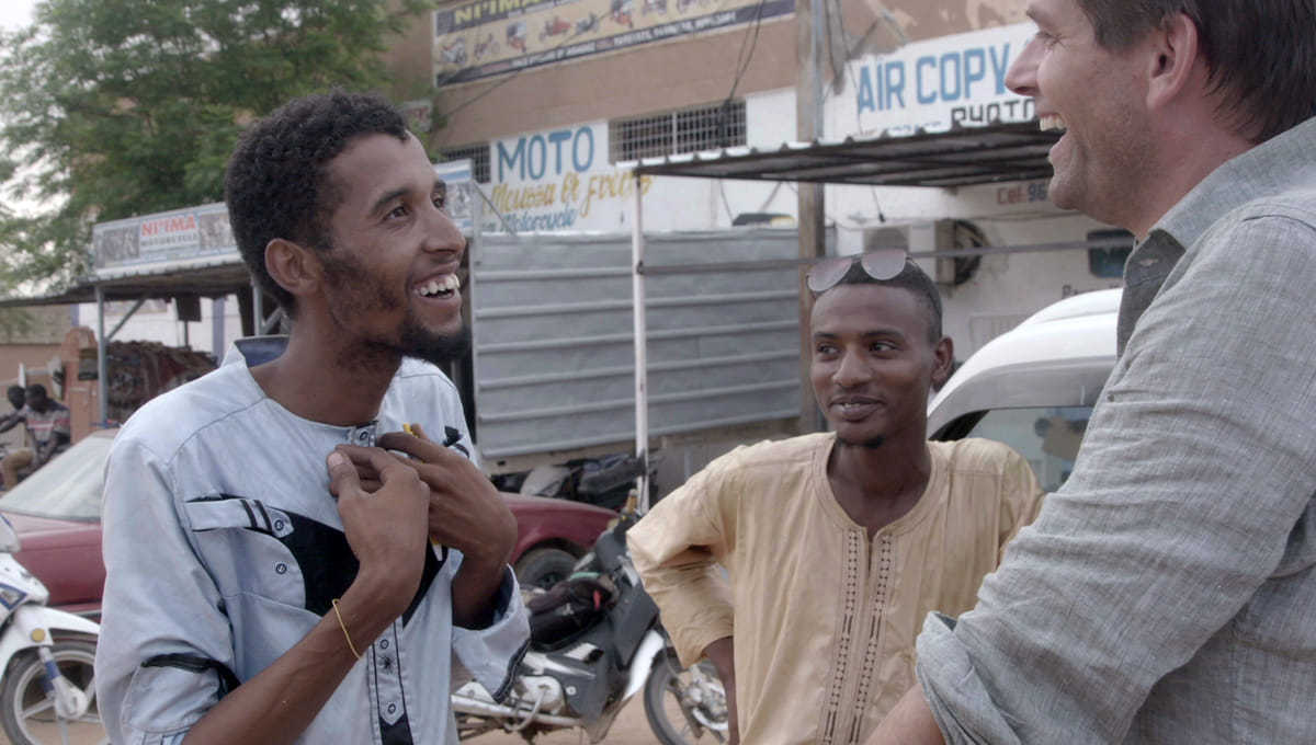 ‘Uiteindelijk blijft het onduidelijk of hij weer smokkelt, maar dat is ook niet belangrijk. Wij wilden de huidige situatie in Agadez laten zien, en dat hebben we gedaan. Aan het einde van de aflevering is te zien dat we Aghali op een maandag – de dag van vertrek voor de meeste migranten – aan de overkant van de straat zien staan. Dat was een mooie toevalstreffer. Hoe Aghali vervolgens reageert als Bram op hem afstapt, is kenmerkend voor hoe hij in elkaar steekt. Eerst gebaart hij dat we hem niet mogen filmen, maar uiteindelijk moet hij er ook om lachen. Het is een fascinerende jongen.’