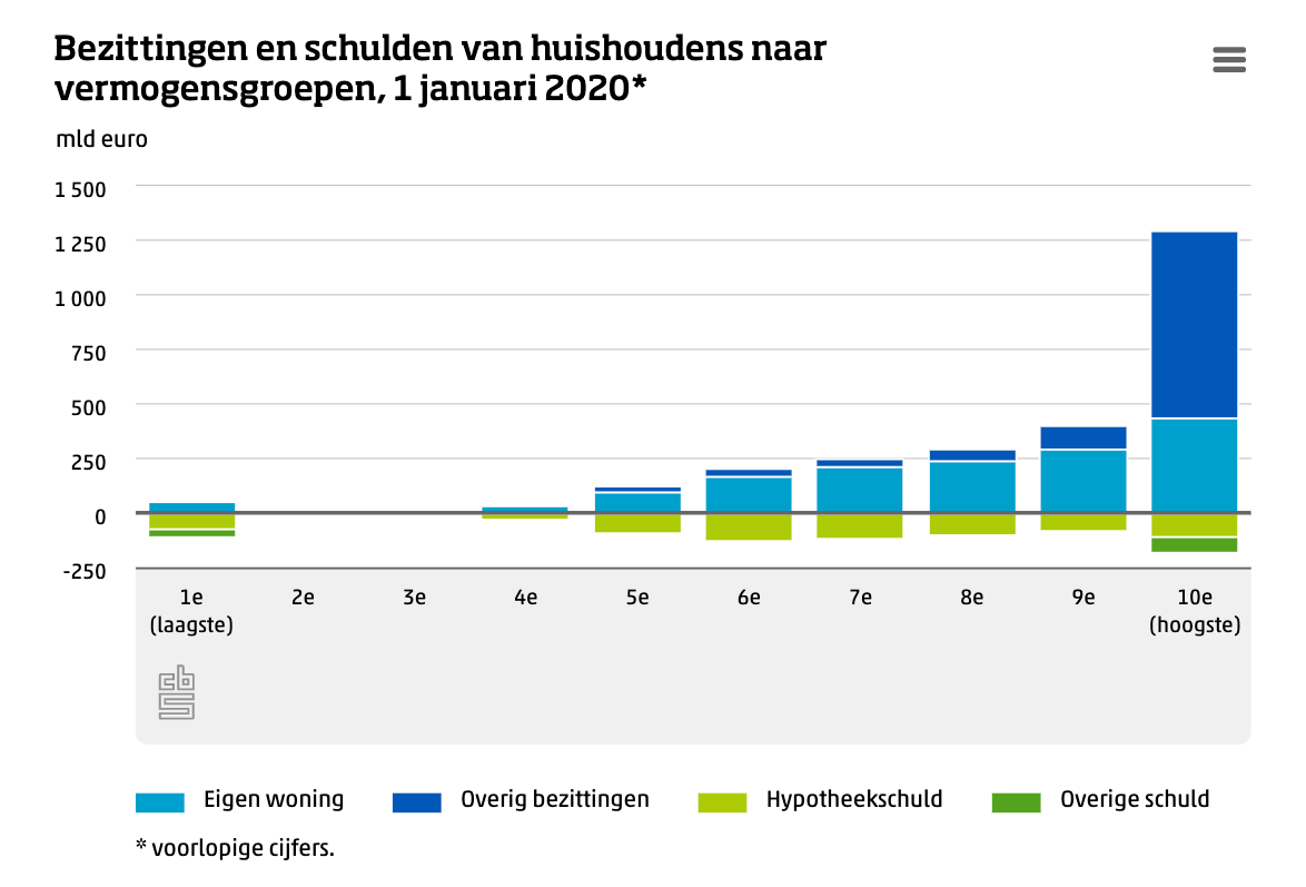 De meeste mensen in Nederland hebben een vermogen* van helemaal nul.