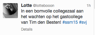 Tim drinkt bier met de studenten na het hoorcollege. Iemand vraagt of Tim de druk voelt om iedere avond uit te gaan, voor de stream. Hij antwoordt dat hij iets juist níet doet als het van hem verwacht wordt. Ondanks dát belooft hij de studenten dat hij mee uit gaat.