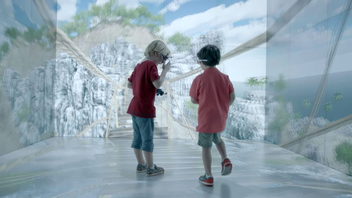 Ter introductie kijkt het publiek naar een preview van de aflevering van The Mind of the Universe waarin Cruz-Neira zit. Het fascinerendste beeld in dat fragment komt niet uit de virtuele, maar de echte wereld: we zien haar zoontje van zes thuis met zo’n lompe virtualrealitybril op, terwijl hij met zijn armen in de lucht zijn particuliere werkelijkheid staat te dirigeren. Moeder Cruz-Neira vertelt de zaal dat ze vol ontzag is voor het vermogen van haar zoontje om zich onder te dompelen in de virtuele wereld. Hij kan dat zelfs beter dan zij zelf, want hij is er mee opgegroeid. Als contrast zien we haar bejaarde ouders met de bril op stuntelen: die krijgen het nooit meer onder de knie.