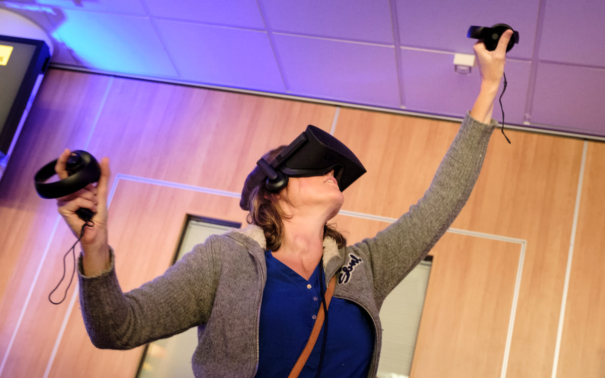 Virtual reality gaat onze wereld veranderen.’ Carolina Cruz-Neira, pionier op het gebied van virtual reality, speelt op de Eindhovense Fontys Hogeschool een thuiswedstrijd voor een volle zaal, hoewel ze uit de VS is overgevlogen voor dit evenement. De ruim 200 bezoekers die op deze tweede editie van The Mind Live zijn afgekomen, hebben vooraf met behulp van een virtualrealitybril met het fenomeen kennis kunnen maken. Avontuurlijke fietstochten maken op een hometrainer, of objecten in de ruimte zien zweven die niet echt zijn, maar die je wel beet kunt pakken: vroeger moest je daarvoor naar een instituut met een supercomputer. Tegenwoordig kan zelfs een laptop de berekeningen aan die nodig zijn om een tamelijk realistisch en interactief 3D-beeld te creeëren. Alleen de bril zelf is nog steeds een relatief groot en zwaar ding.