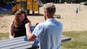 De eerste gast staat al bij de slagboom: de jonge hiphoppopzangeres Linde Schöne, bekend van het nummer ‘Liefde van de vloer’. Haar lippen zijn rood en nonchalant loopt ze met een sigaret in de hand richting de tent. Daar staan al klapstoelen en snoepperzikjes klaar.