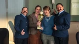 En de winnaar is... Mendy van Dort met een imitatie van de portiers!