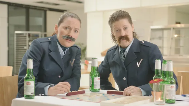 We hebben die een paar keer opgenomen omdat we er zelf veel lol in hadden. Een beetje teveel lol, we moesten telkens lachen. Bij de vierde take stond ie er wel op. Ik heb mijn moeder ook nog even langs laten lopen als figurant.