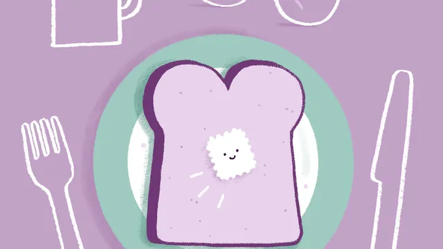Oke, je hebt 'm opgeknipt. Ik heb croissantjes bij. Ga jij die nu op het croissantje leggen en opeten?