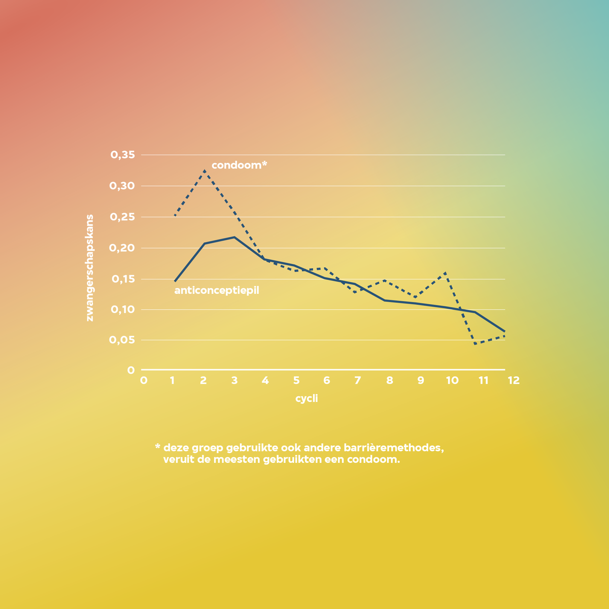 Dat hebben ik nog even gechecked. In een landelijk Deens onderzoek uit 2013 vonden ze inderdaad een klein verschil. Twee groepen vrouwen die zwanger wilden worden, werden met elkaar vergeleken: een groep die de pil had geslikt tot de start van het onderzoek, en een groep die niet-hormonale voorbehoedsmiddelen hadden gebruikt, bijvoorbeeld condooms. De groep vrouwen die de de pil had geslikt, bleek vlak na het stoppen iets minder kans te hebben om zwanger te worden, maar na vier cycli was er echt helemaal geen verschil meer te zien. Kijk nu in de app, daar staat een grafiek waarin je dit goed kan bekijken.