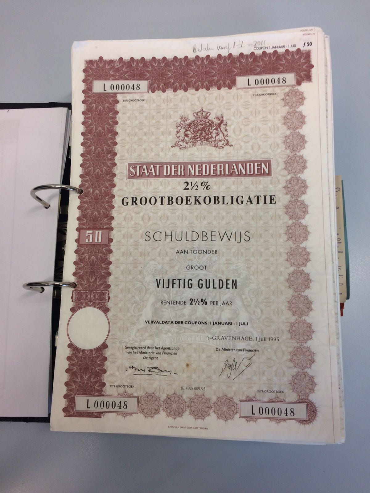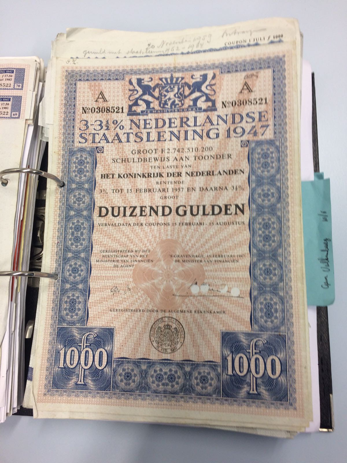 Tessa gaat langs bij econoom Emile Spijkerman op het ministerie van Financieën. Hij is expert op het gebied van staatsobligaties en kan haarfijn uitleggen wat dat nou precies is, zo'n obligatie. Na het interview pakt hij er een stoffige map bij en haalt een stel oude staatsobligaties tevoorschijn. Bekijk ze hieronder!