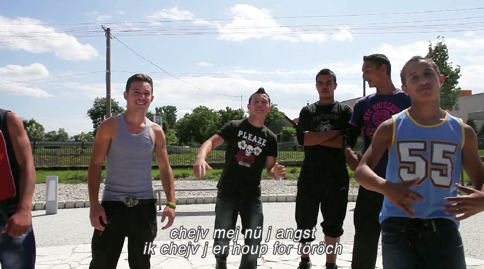 En zo kwam het dat op 28 juli in Kecerovce (vlakbij Košice) de eerste ontmoeting tussen een groep Roma-jongeren en twee kunstenaars plaatsvond. Rieneke maakte samen met hen een metershoge chihuahua in een koffiekopje, een beeltenis waarin de Roma herkenden hoe de wereld hen ziet. Door deze enorm op te blazen wordt het kleine keffertje plotsklaps een monument voor hun veerkrachtigheid. Michiel en Rieneke besloten samen met de Roma van Kecerovce, een plaatsje waar overigens 90 % van de inwoners tot deze minderheid behoort, een film te maken waarin op beeldende en luchtige wijze uiting wordt gegeven aan de problemen die de Roma ervaren. In de film zie je een groepje stoere jongens op onnavolgbare wijze een vertolking geven van “Chejv mej nü j angst”. Wat in eerste instantie een grappige poging lijkt om Breda en Košice te verbinden, vormt een metafoor voor taalbarrières en miscommunicatie.